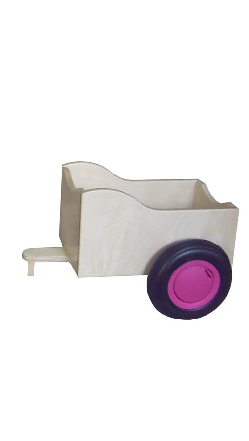 Aanhangwagen, passend achter de loopfiets Berken van v. Dijktoys. Leverbaar in 6 kleuren; blauw, rood, rose, limegreen, lichtblauw en oranje.