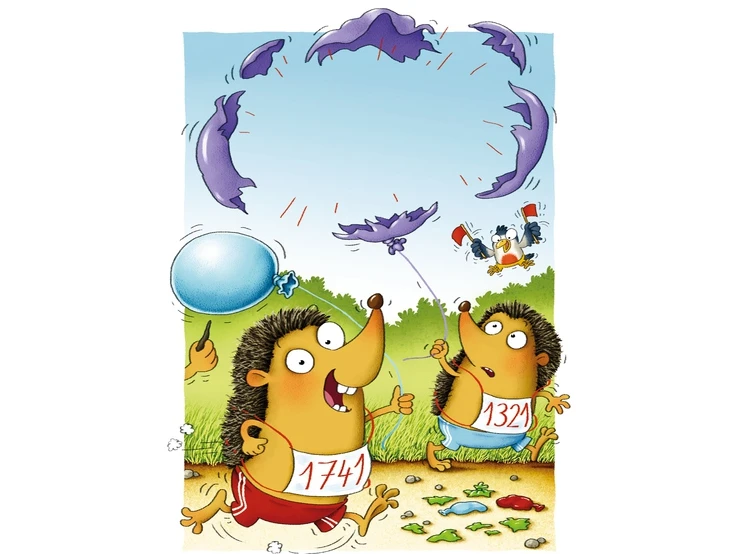 Pang! Het startschot is gevallen en meteen brandt de strijd in de luchtballonnen-race van de egels los. De egels proberen daarbij om zo snel mogelijk hun luchtballonnen onbeschadigd over de finishlijn te brengen. Maar het gaat er niet altijd zo eerlijk aan toe. Die brutale rakkers prikken elkaars ballonnen kapot en bezorgen zich stiekem nieuwe. Wie hier wil winnen, moet het juiste gevoel in de stekelpunten hebben en af en toe een list gebruiken.