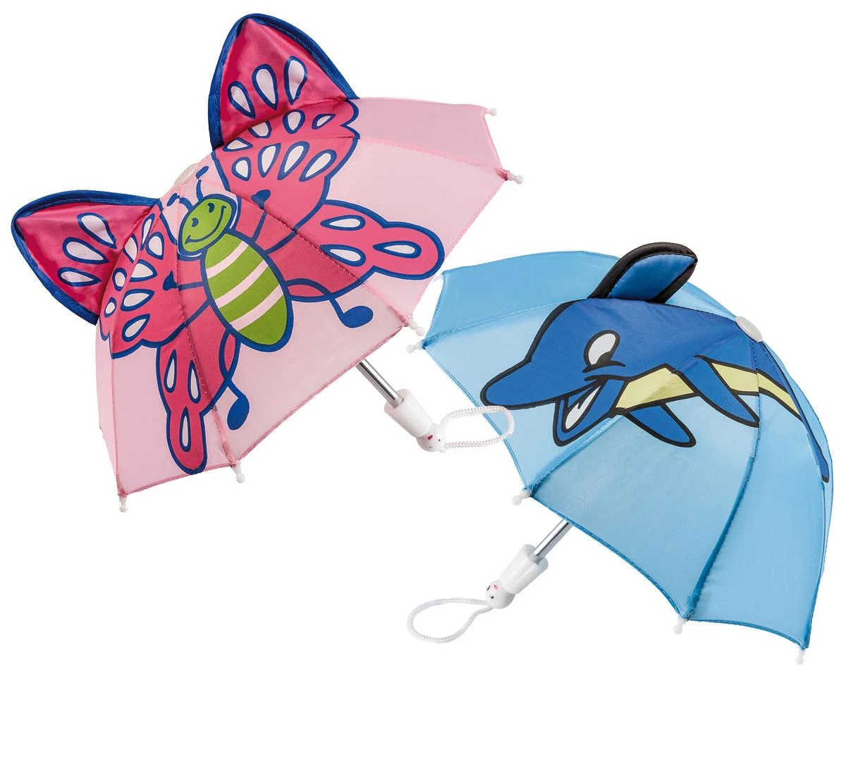 Superleuke paraplu voor de pop in 2 populaire dessins; dolfijn en vlinder. Wordt assorti geleverd.