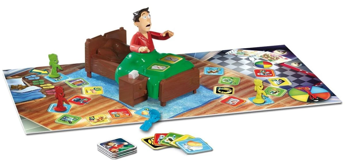 Op de kaarten die de spelers hebben gekregen zie je deze gebeurtenissen weer terug. Als je op een vakje beland waarvan jij dezelfde gebeurteniskaart hebt, dan ben je beschermd en hoef je niet op de knop te drukken. Maar heb je deze beschermkaart niet, dan moet je het aantal keer op de knop naast Papa zijn bed drukken als staat aangegeven op het bord. Pas wel op! Want als Papa wakker schrikt tijdens jouw beurt, wordt je weer terug naar bed gestuurd! Wie het eerste bij de koelkast aankomt is de winnaar.