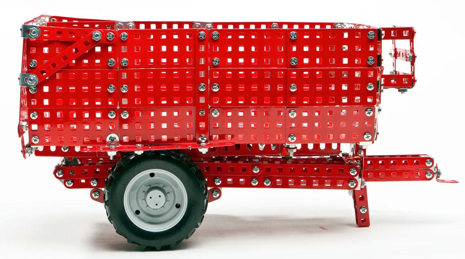 Bouwdoos met 801 onderdelen uit de Tronico Profi serie. Betreft de tractoraanhanger Krampe Big body E460. Het model is geheel functioneel. De zijwanden zijn gewelfd, de achterklep kan geopend worden. De wielen zijn uitgerust met terreinbanden, een ladder voorzien. Dit model kan gekoppeld worden aan alle tractoren uit de Tronico Profi serie.
