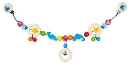 Klein kunstwerk gemaakt van hoge kwaliteit hout – kinderwagen keten Dolfijn van Heimess.