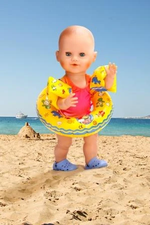 Set Β van een zwemband en zwemvleugeltjes voor de pop.